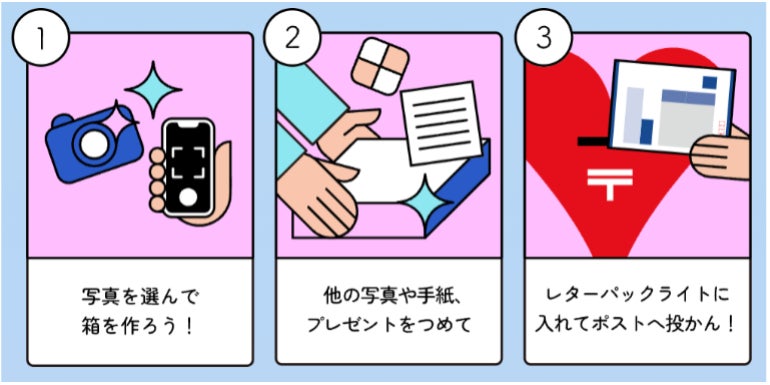 新規コンテンツとして登場するのは、お菓子を箱に詰めて手紙と一緒にポストから送ることができる「ぎゅぎゅっと♡つめほーだいギフト」や、思い出の写真をプリントした“箱”を特別なギフトとして届ける「ズッキュン♡ハコニコ便」です。どちらもクリスマスギフトにぴったりです。