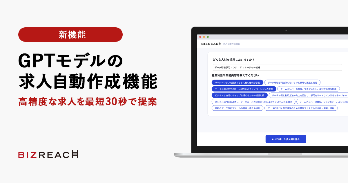 ビズリーチ会員向けGPTツールに続き、採用企業向けに新たなGPTツールを発表~高精度な求人を最短30秒で提案~