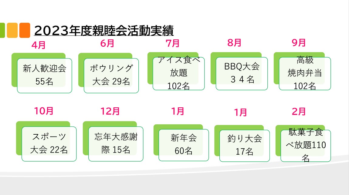 また、ボウリングやバレーボールといったアクティビティは、行きたい人が自由に参加できる形式で実施された一方、お弁当やアイスを提供するイベントは全員を対象とし、業務の合間でも参加できるよう配慮された。特に、昼間に行われたバーベキューイベントは、小さい子どものいる職員から高評価を得た。
