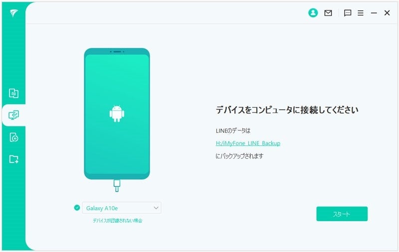 ステップ1:iTransor for LINEをダウンロードして、インストールします。そしてソフトを開いて、画面の指示通りでiPhoneをPCと接続して、スタートをクリックします。