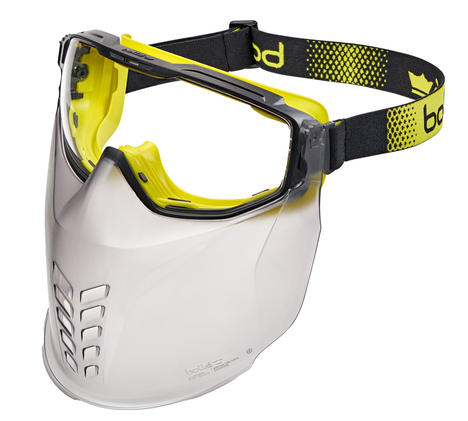 欧州安全規格「EN166/170」認証を取得した高性能ゴーグルとフェイスガードのセットです。独自技術「ウェーブテクノロジー」採用のガスケットが着用者の顔の形状に合わせて圧力を均等分散させるため、長時間でも快適な装着が可能です。