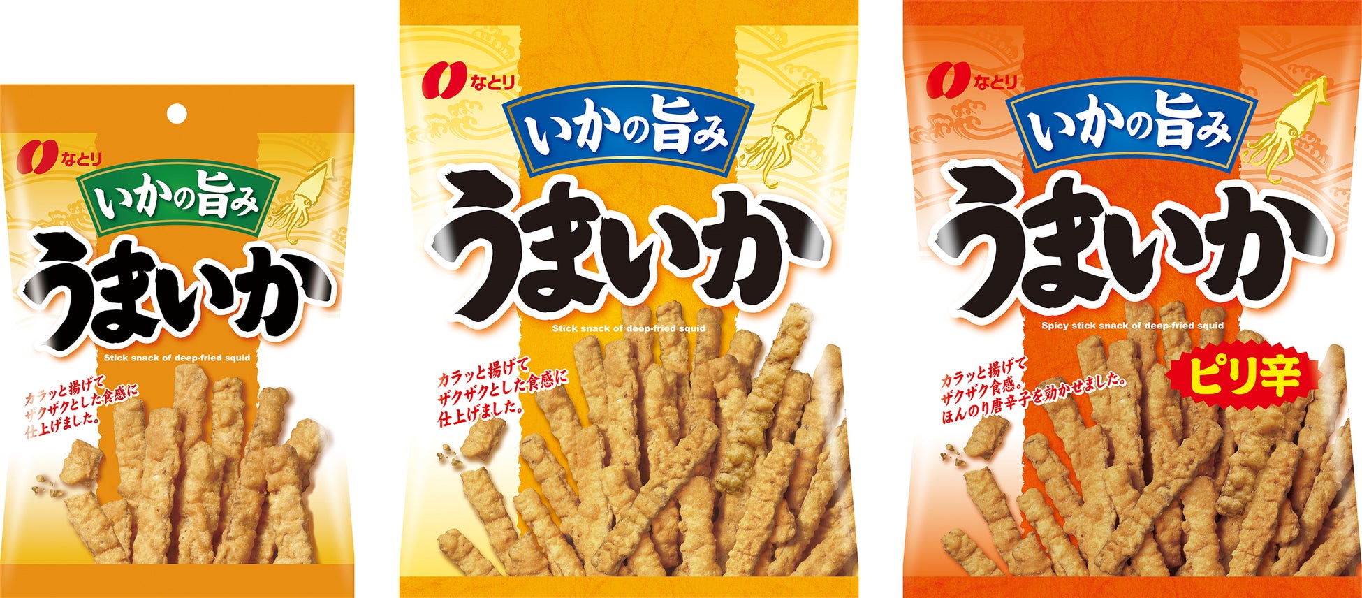 「うまいか」は、いかを練りこんだ生地に衣をつけて揚げており、ザクザク食感が特長の商品です。「ザクザク食感」は、満足感はもちろん、連食性が高まります。また、「ザクッ」という音の軽快さがストレス発散に繋がるということが人気につながり、現在トレンドの食感になっています。