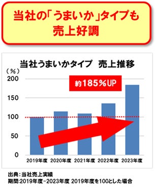 近年、珍味カテゴリの中で揚物商品の市場が伸長しています。ボリューム感があることや、かみ応えの良さ、しっかりとした食べ応えがあり満足度が高いことが理由として考えられ、当社の「うまいか」シリーズも好調です。