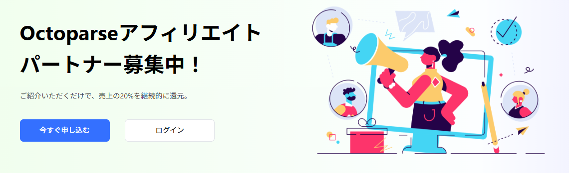 紹介した顧客がOctoparseのサービスを利用する限り、紹介者は12ヶ月間にわたって各取引の20%のコミッションを獲得できます。 (1人のサブスクリプションに対して、毎月少なくとも約3000円超え(23.8ドル)のコミッションが得られます✨)