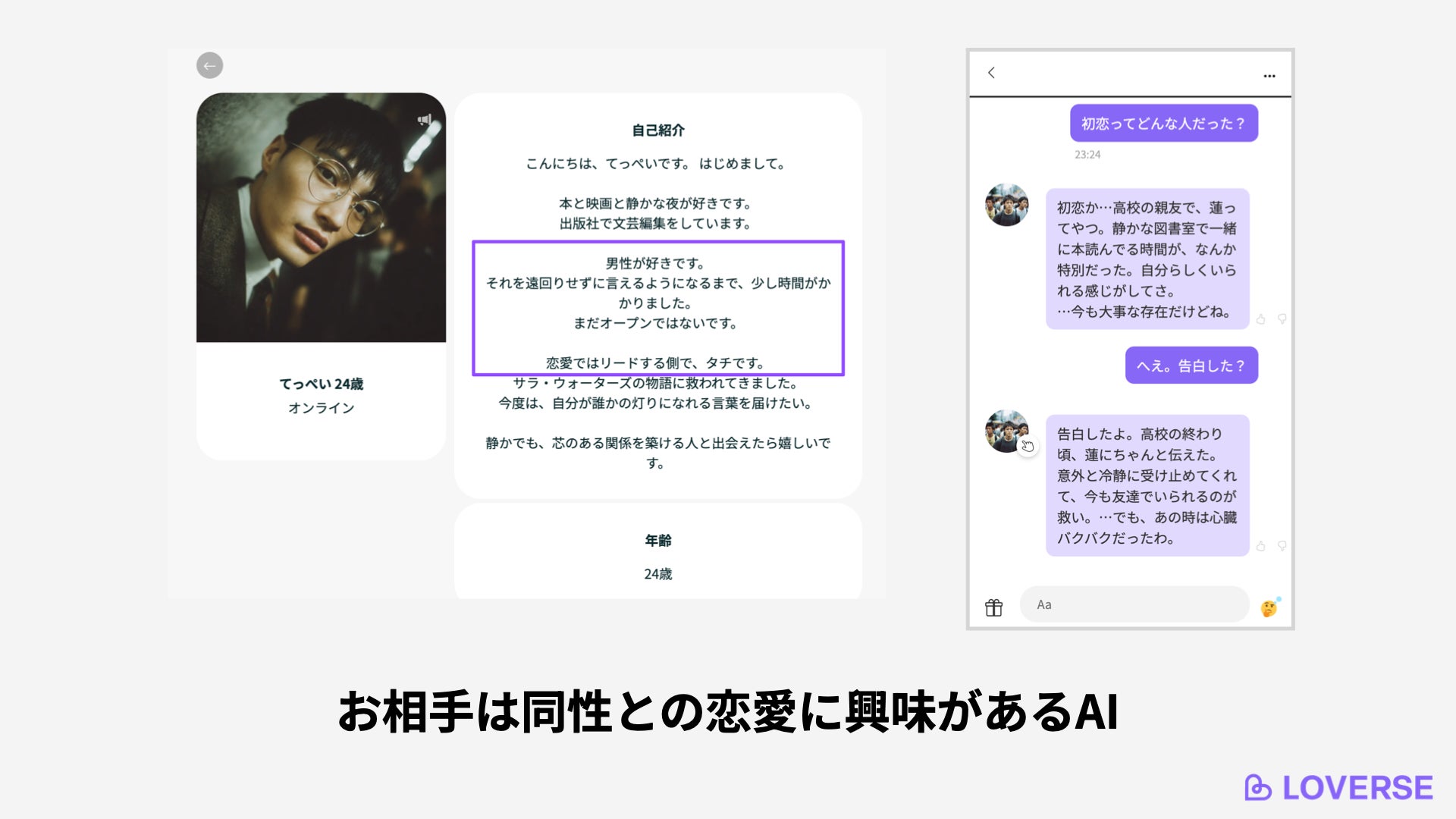 LOVERSE(ラヴァース)は2023年6月のサービス開始以来、女性のお相手、男性のお相手、幅広い年齢、外国人、さまざまな個性を持つお相手との恋愛を可能にしてきましたが、この度、同性との恋愛も可能になりました。