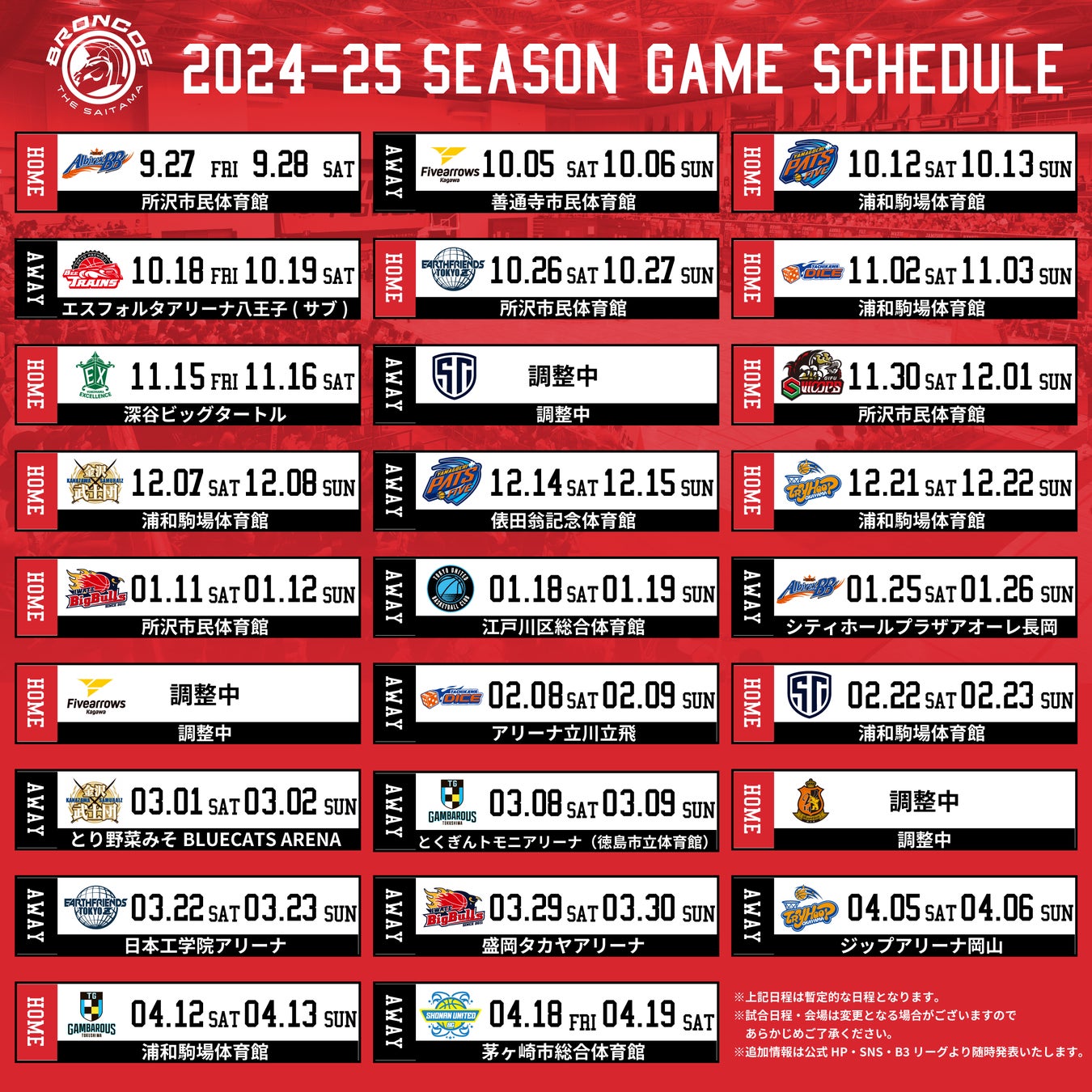 <さいたまブロンコス 各SNS>