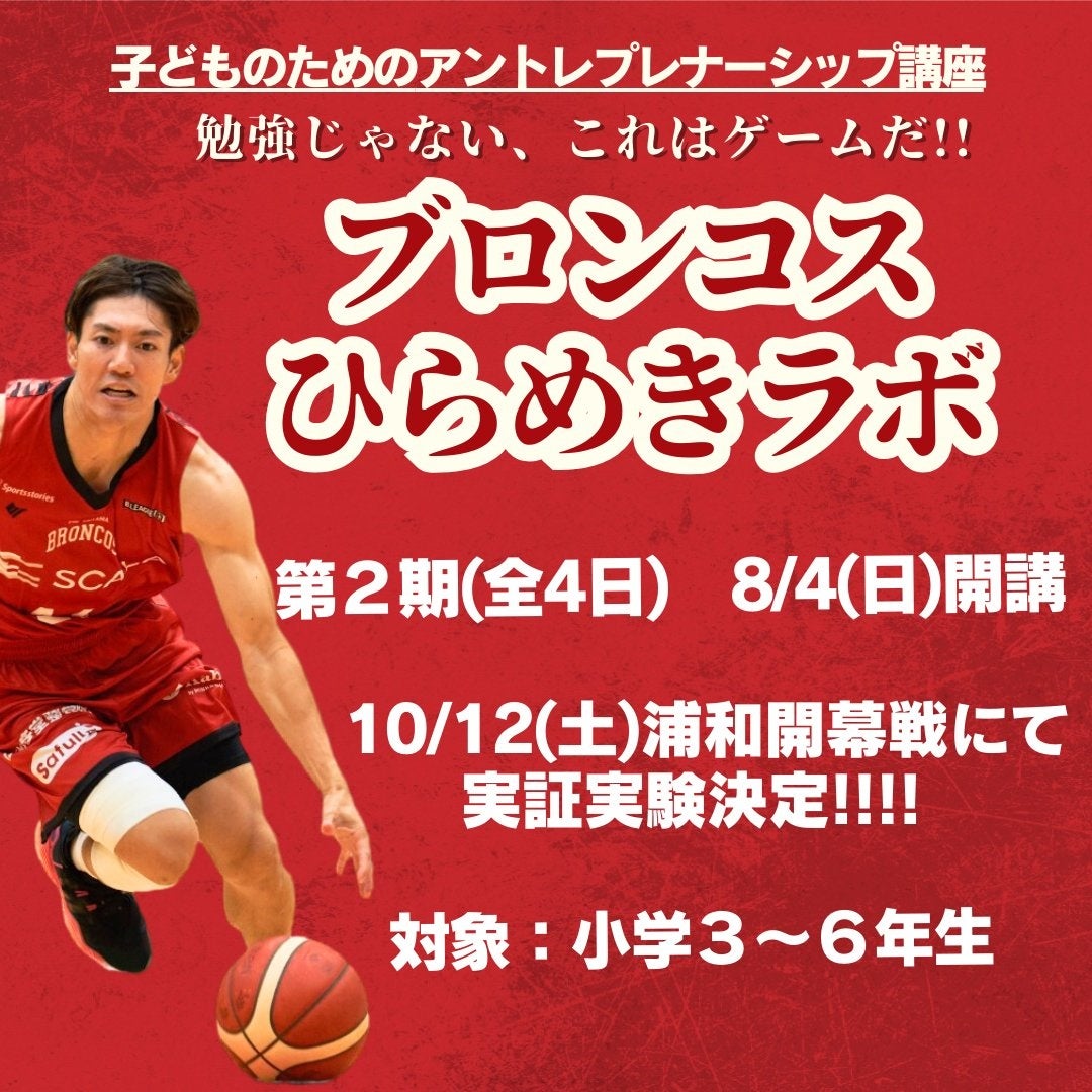 株式会社ブロンコス20(本社:埼玉県さいたま市、代表取締役:福田 剛紀/小竹克幸 以下「さいたまブロンコス」)と株式会社グローバルキャスト(所在地 愛知県名古屋市中村区、代表取締役 川口 英幸)との共創により教材開発したアントレプレナーシップ教育「ブロンコスひらめきラボ」の第2期を小学3年生から6年生を対象とし一般に募集を開始しましたことをお知らせいたします。