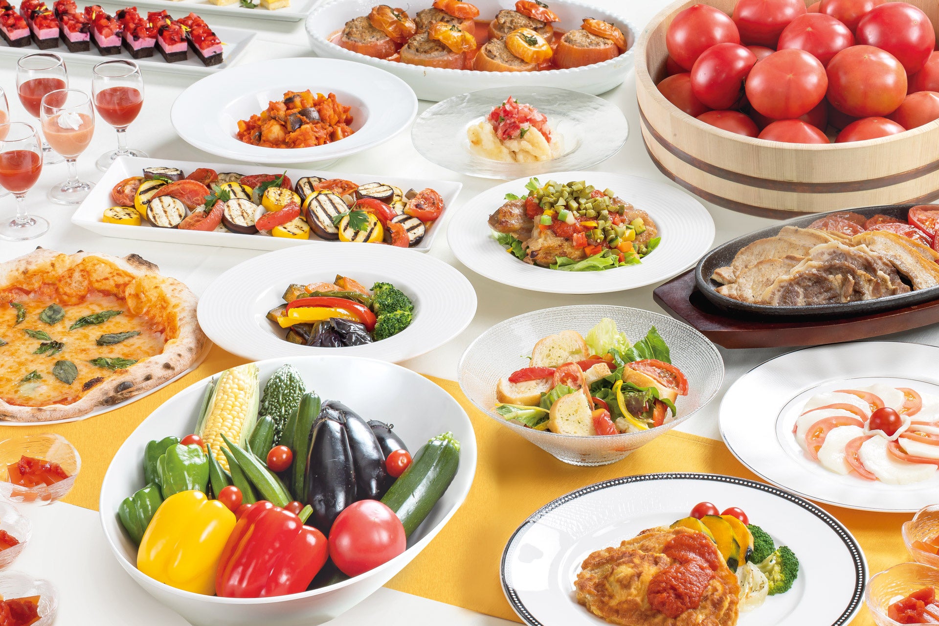 このコラボレーションは、長野県松本市のホテルブエナビスタと、同じく松本市に自社工場を構えるナガノトマトとの共同企画です。ナガノトマトの業務用トマトピューレや各種加工食品を用いて、レストラン4店舗およびホテルショップのシェフが、旬の長野県産食材の美味しさを引き出したメニューを提供します。2022年に開始して3年目となる今年はこれに連動した両社共同でのSNS企画も初めて実施します。