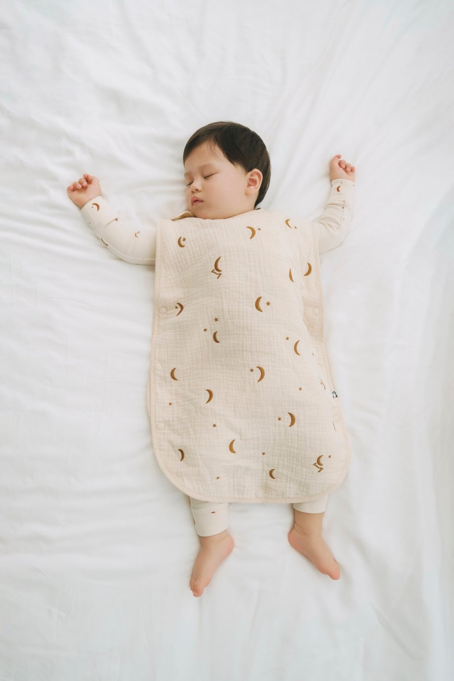 掛け布団代わりの綿100%6重ガーゼで、心地よいSnapMagic™ スリーパー。