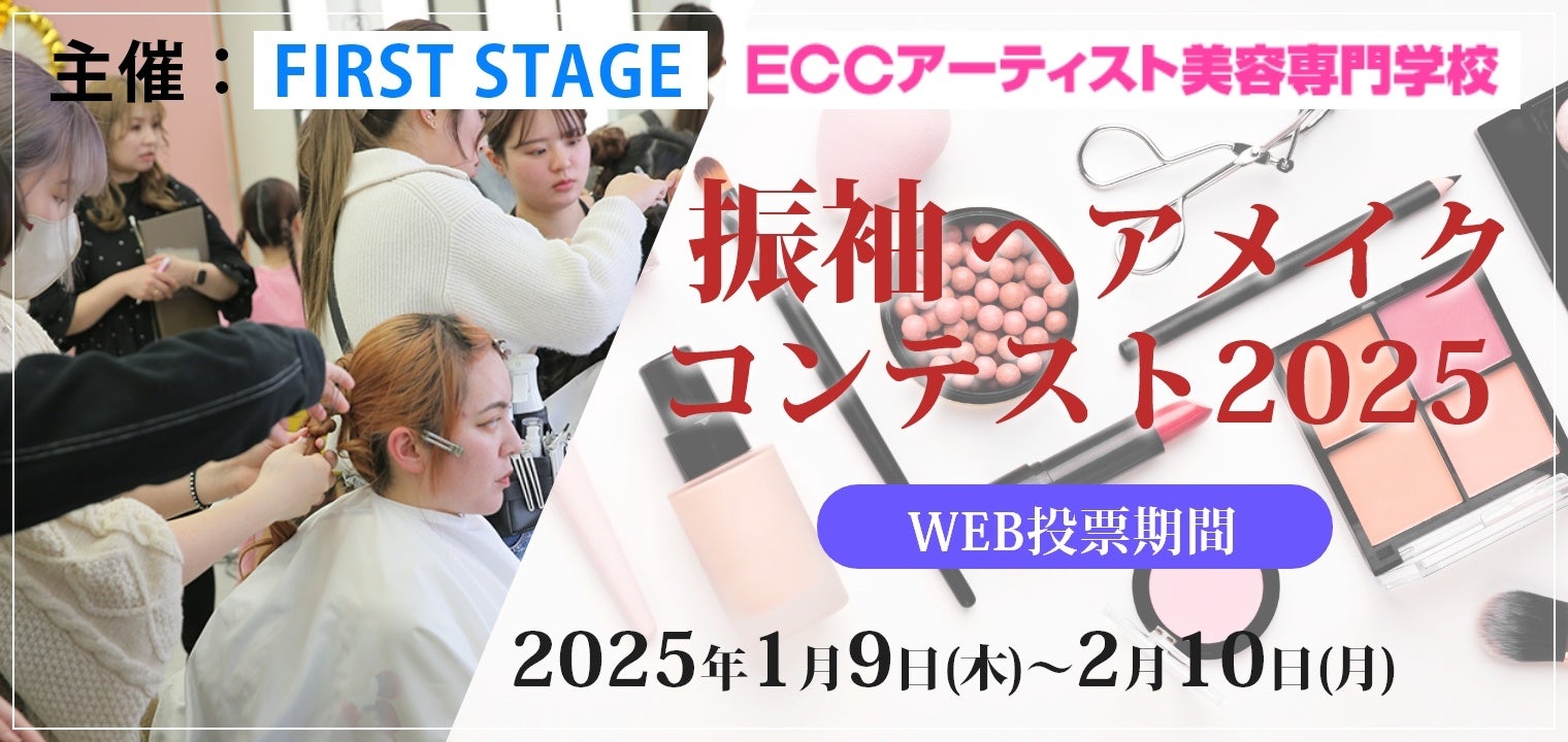 奈良・大阪・京都・兵庫・三重に18店舗(グループ併設店含む)展開する振袖専門店・フォトスタジオ ファーストステージ(所在地:奈良県奈良市油阪地方町6-4/株式会社ファーストステージ/取締役社長:近藤 陽子)は、トップクラスの美容教育を提供するECCアーティスト美容専門学校と共同で、「振袖ヘアメイクコンテスト2025」を開催。2025年1月9日(木)より、WEB投票、Instagram投票、TikTok投票による一次選考を開始しました。本イベントは、学生が振袖文化に触れながらヘアメイク技術を磨き、作品を通じてその成果を発表する機会を提供するものです。