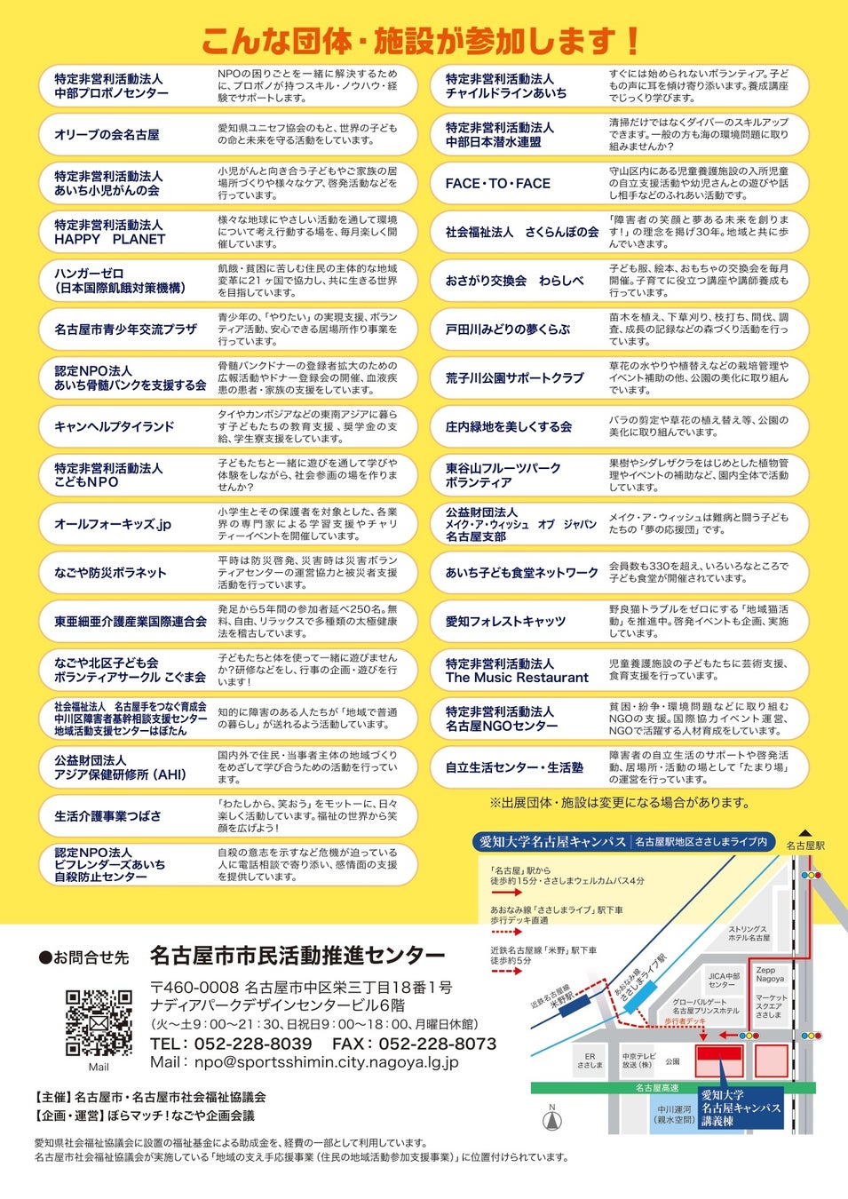 ●イベントの詳細・申込については、下記名古屋市市民活動推進センターのホームページをご覧ください。