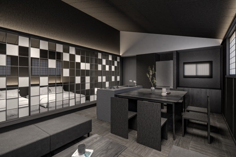 本施設は特に外国人観光客の皆様に、宿泊中も日本文化を感じていただけるよう、江戸の長屋をイメージした木造二階建で、室内も日本の伝統的要素を取り入れた和モダンな空間となっております。客室は29室で、部屋のタイプにより4名~10名(最大)で宿泊が可能です。