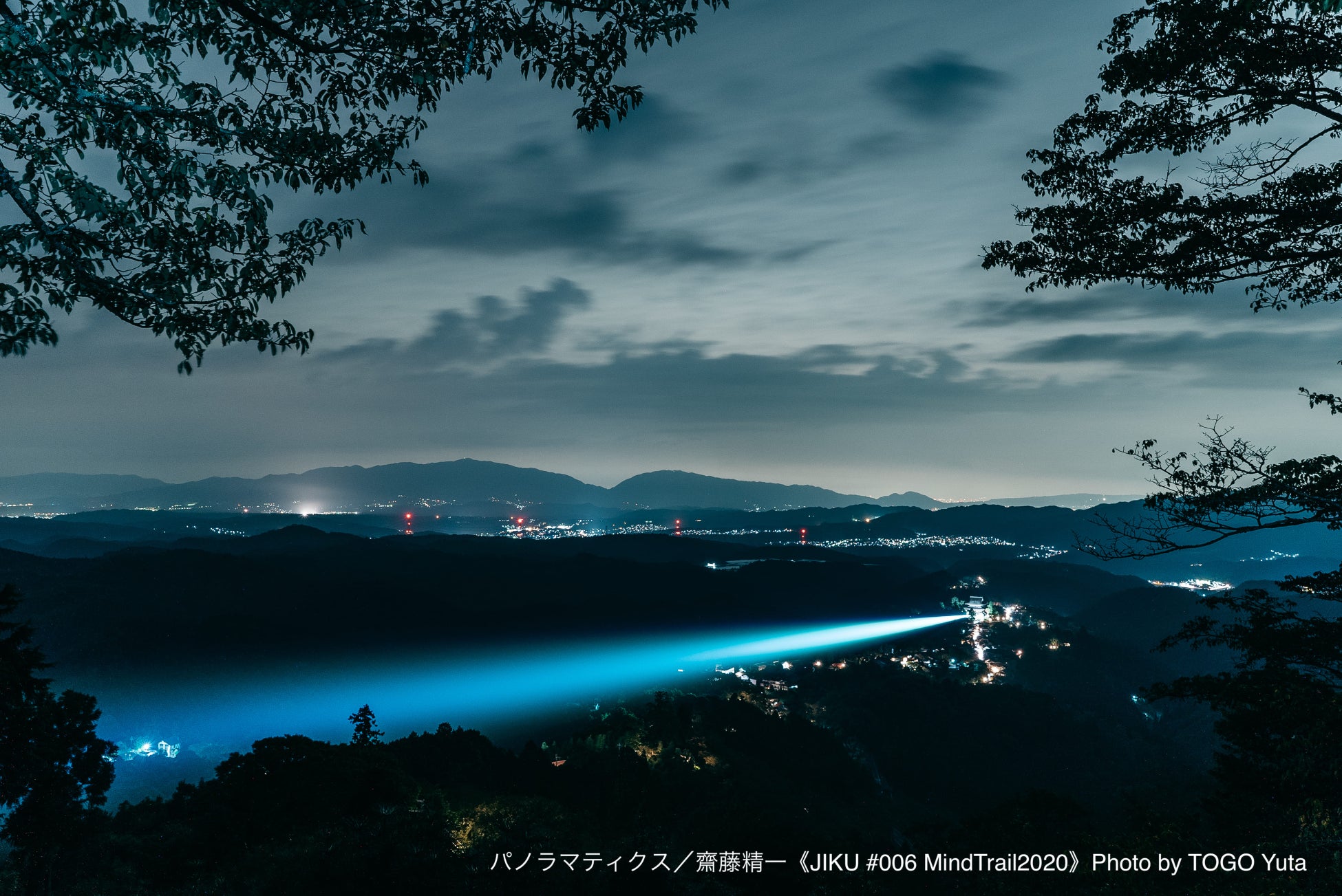 パノラマティクスの齋藤精一による、地域固有の軸となる歴史や事象、伝説などを光線によって可視化する作品が登場。3本の光線が会場の上空を照らします。