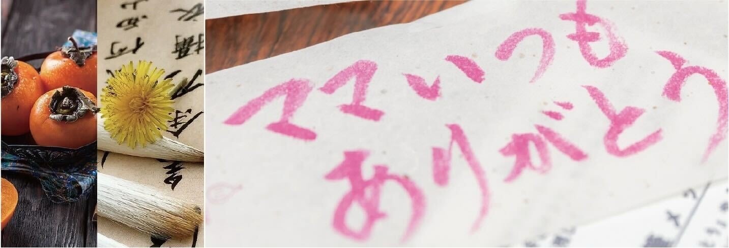 ②柿から産まれた“温かみを感じる紙”フルーツペーパーの無料書道教室