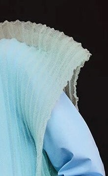 新作「AQUA」コレクションは、水の流動性や透明感を軽やかなファブリックやオーガンジー、透け感のある素材で表現。大西洋のブルーからアクアマリンのグリーンまで、様々な青のニュアンスで描かれた軽やかで透き通るように繊細、夢の中にいるような美しさをたたえたスタイルが揃います。