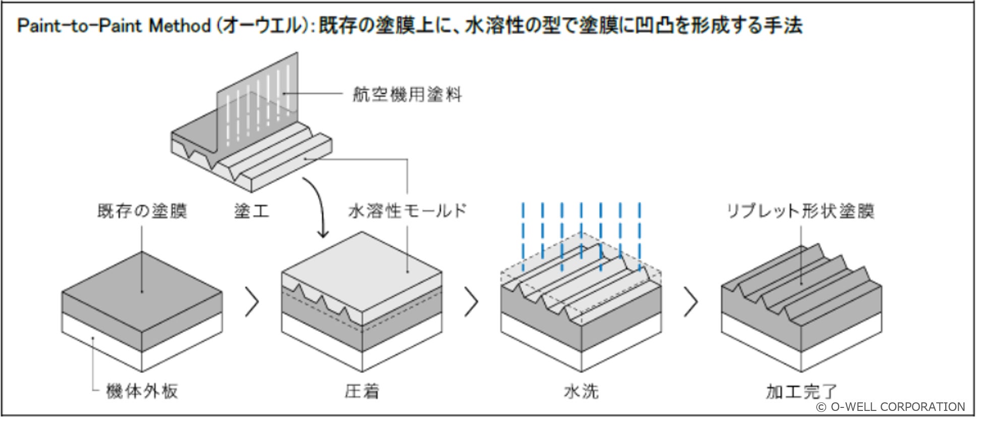 (*1)Paint-to-Paint Method:既存の塗膜上に、水溶性の型で塗膜に凹凸を形成する手法。オーウエルおよびJAXAの共同特許(特許第6511612号)。