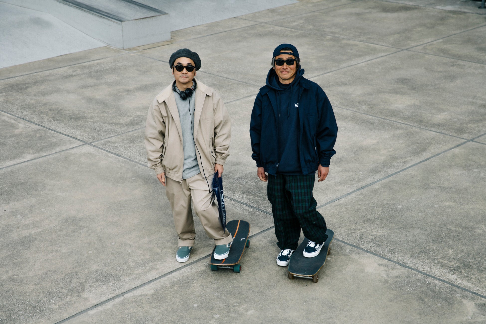 加藤忠之氏はBEAMSのSURF & SK8の担当バイヤー、「SSZ (エス エス ズィー)」のディレクターとして活躍しています。中田慎介氏は、元BEAMSクリエイティブ・ディレクターであり、「Unlikely (アンライクリー)」のデザイナーで、アウトドアユーティリティとアーバンライフスタイルを融合させたパイオニア。両者とも長年日本のストリートファッションの最前線でシーンを牽引してきました。