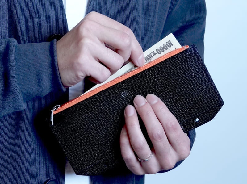 「カードや電子決済はつい使いすぎてしまうので現金で家計を管理したい」「袋分け家計管理は封筒やビニールポーチがすぐにボロボロになるのが難点」「家計管理ポーチは女性をターゲットにしたデザインばかりで男性には持ちにくい」など、キーファーノイだからこそ寄り添える目線で開発した便利なアイテムです。