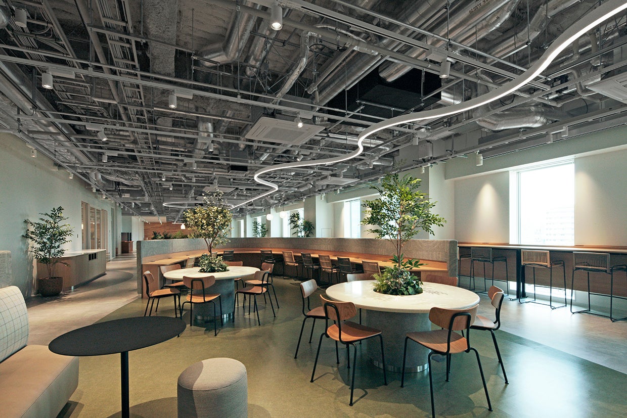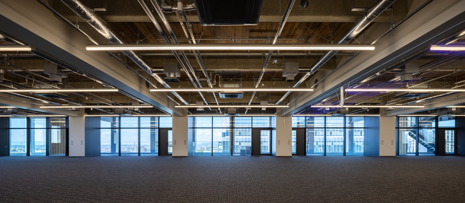今日、人びとが集まり、つながる場として、オフィス/オフィスビルに求められる役割は大きな変化を迎えています。Hirooka Terraceでは、働く場所の開放性と流動性を高め、協創拠点として、多様な利用者が交差し、新たな革新を生み出すワークプレイスの構築を目指すとともに、これを内部にとどめず、外部の自然を感じられる環境として実現することが新たな可能性になると考えました。