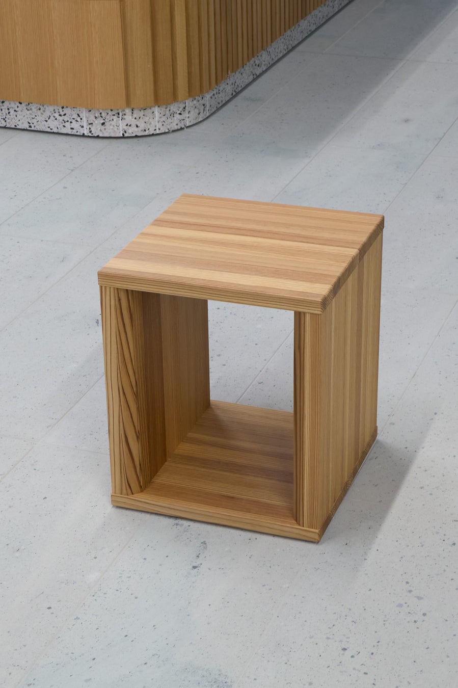 本建物では、三菱地所など7社※が設⽴したMEC Industry株式会社(本社:⿅児島県姶良郡湧⽔町)が開発した配筋付型枠製材「MIデッキ」を導入しています。今回の導入は、MIデッキを採用したプロジェクトとして過去最大規模となります(県産材スギ:39.29㎥、南九州産材スギ:95.87㎥)。天井以外にも⽯川県産のヒバ(2、3階外装)やスギ端材(家具やアート)を積極的に用いることで、木質建築普及とカーボンニュートラル推進に加え、能登半島地震で被害を受けた県内木材産業の復興支援にもつなげています。