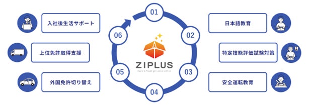 ジップラスは、免許取得支援、外国免許切替支援、人材紹介、海外人材育成事業を一体で展開し、 「運転免許取得支援 × 人材採用支援」による企業課題の総合的な解決を推進しています。