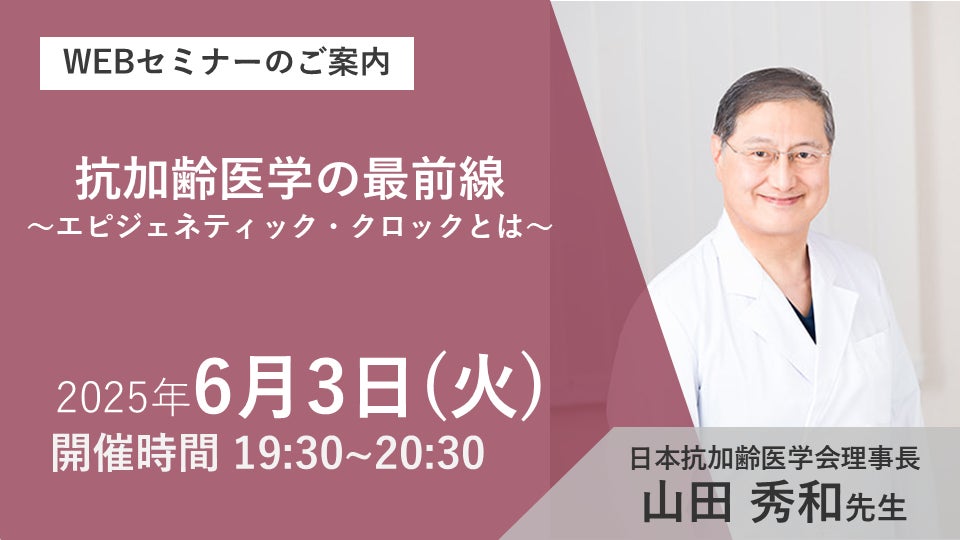 2025年6月3日(火)に、医療機関様向けに日本抗加齢医学会 理事長の山田秀和先生を演者としてお招きし、「抗加齢医学の最前線」をテーマに、無料WEBセミナーを開催いたします。