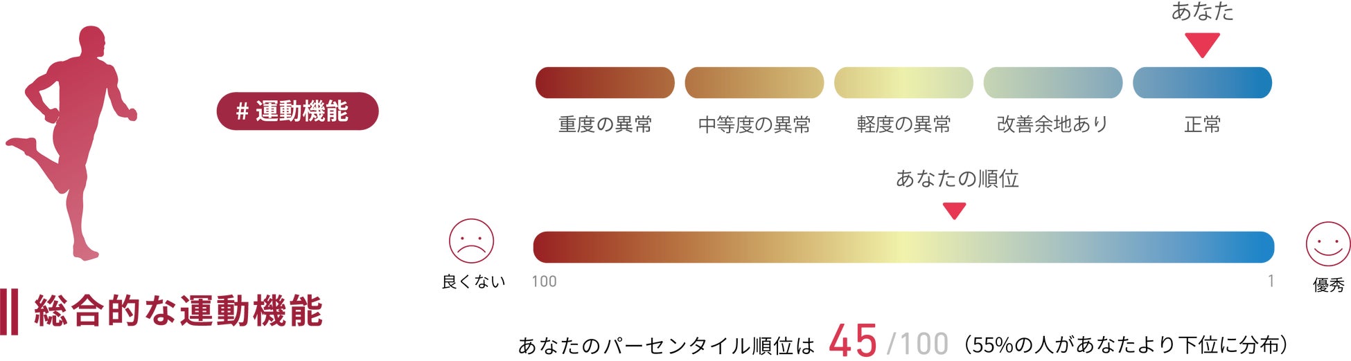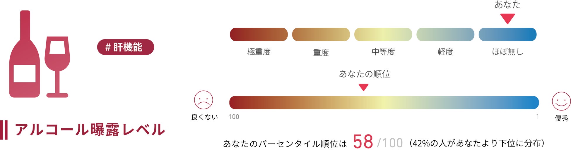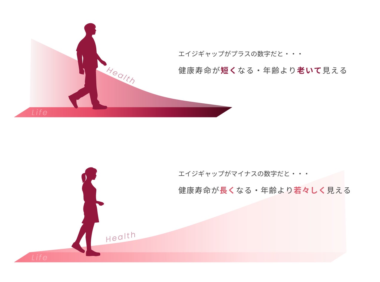 現在の老化進行度(エイジギャップ)や老化スピード(1年の間に何歳分の歳をとっているか)を把握できます。