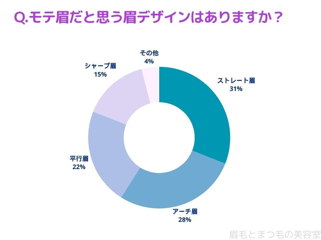 モテ眉と思われているのは「ストレート眉(31%)!「アーチ眉(28%)」、「平行眉(22%)」もほぼ同率の人気