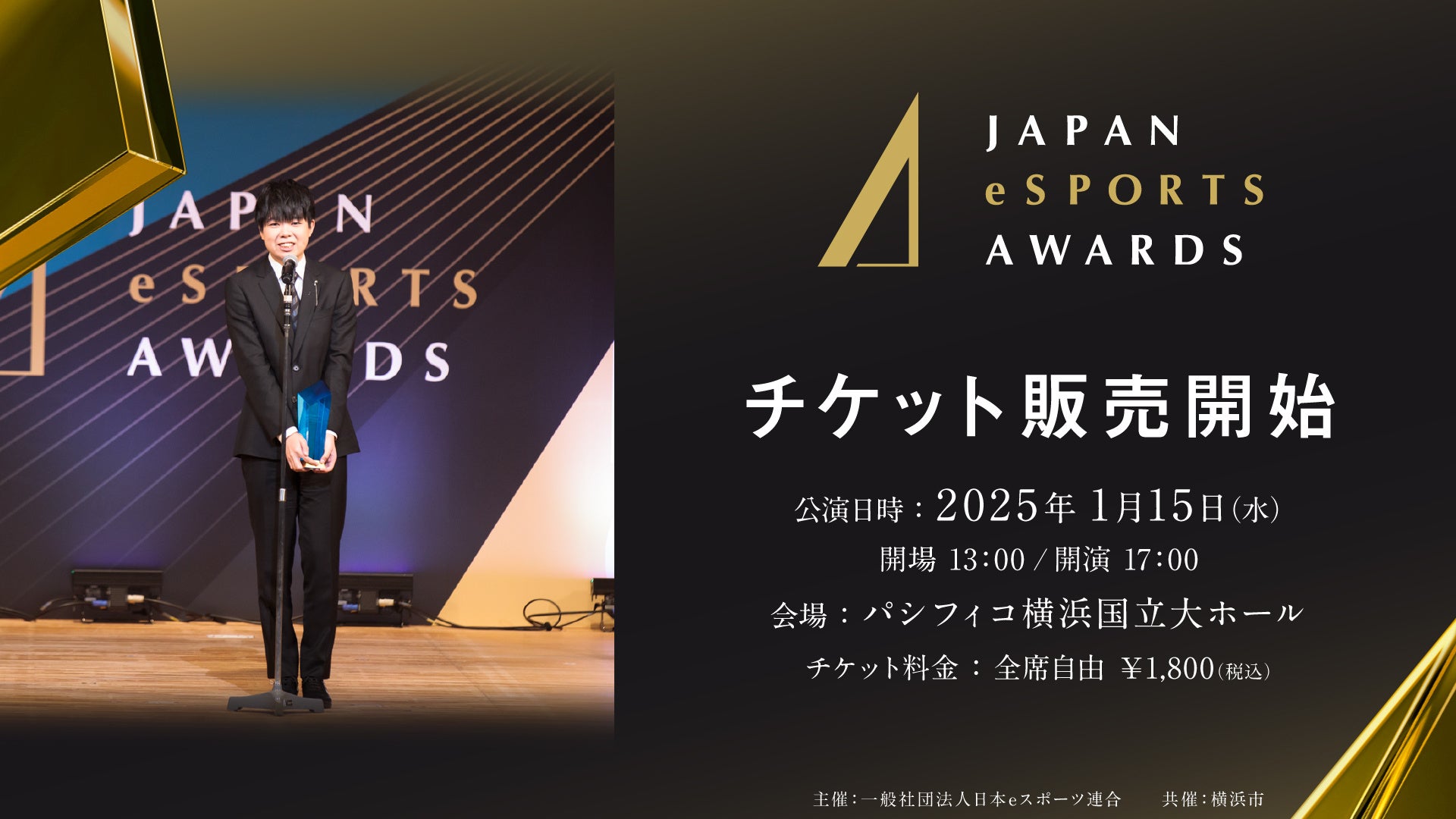 一般社団法人日本eスポーツ連合(会長:早川英樹 以下、JeSU)は、2025年1月15日に開催する、「日本eスポーツアワード2024」のチケット販売を2024年12月6日より開始いたしました。