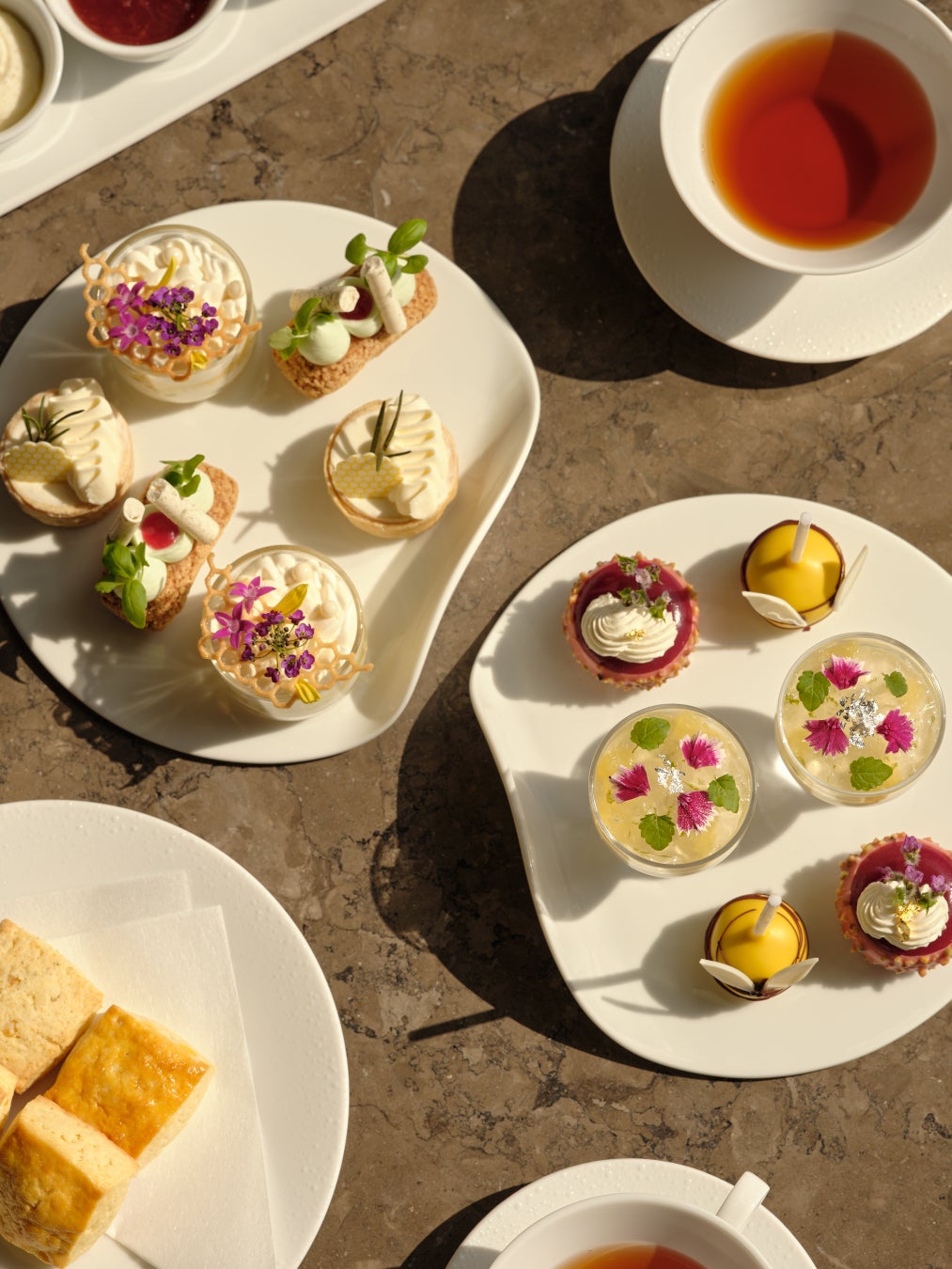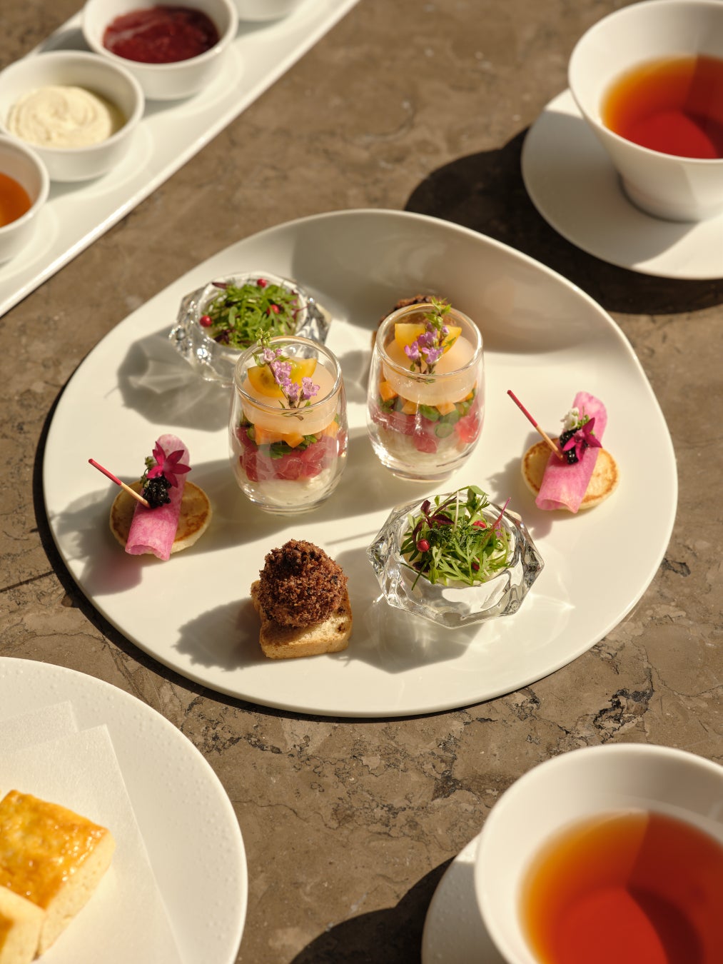 「ジャヌ ラウンジ & ガーデンテラス 」では、麻布台ヒルズの「グリーン&ウェルネス」というテーマに寄り添いながら、季節ごとに異なるストーリーをもつアフタヌーンティーをご提供しています。2025年の初夏は、ハーブとはちみつの豊かなペアリングに着目し、自然の恵みが感じられる「ハーブとはちみつのアフタヌーンティー」をご用意いたしました。
