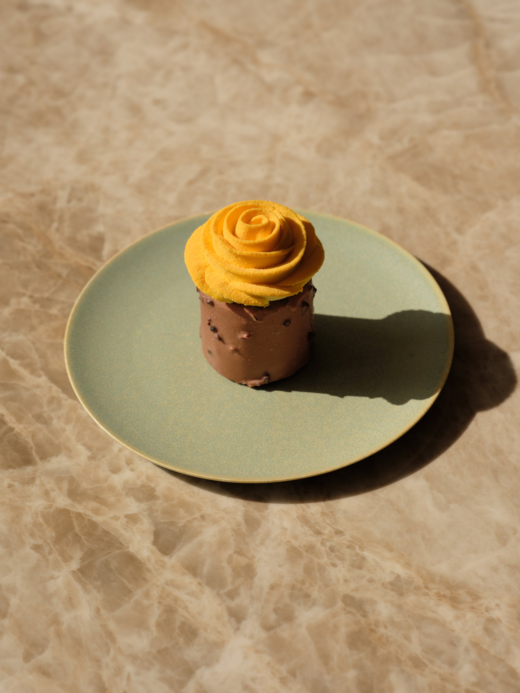 サクッとしたオレンジのビスキュイとチョコクランチの土台、中央のブリュレとジュレ、そしてムースのなめらかさ。食感と香りのバランスにこだわったこのケーキは、一口で多彩な味わいが楽しめるのが魅力です。手にした瞬間に笑顔がこぼれる、この初夏だけの香り豊かな「タルニー」を、ご自分へのご褒美や大切な人への贈りものに、ぜひお選びください。