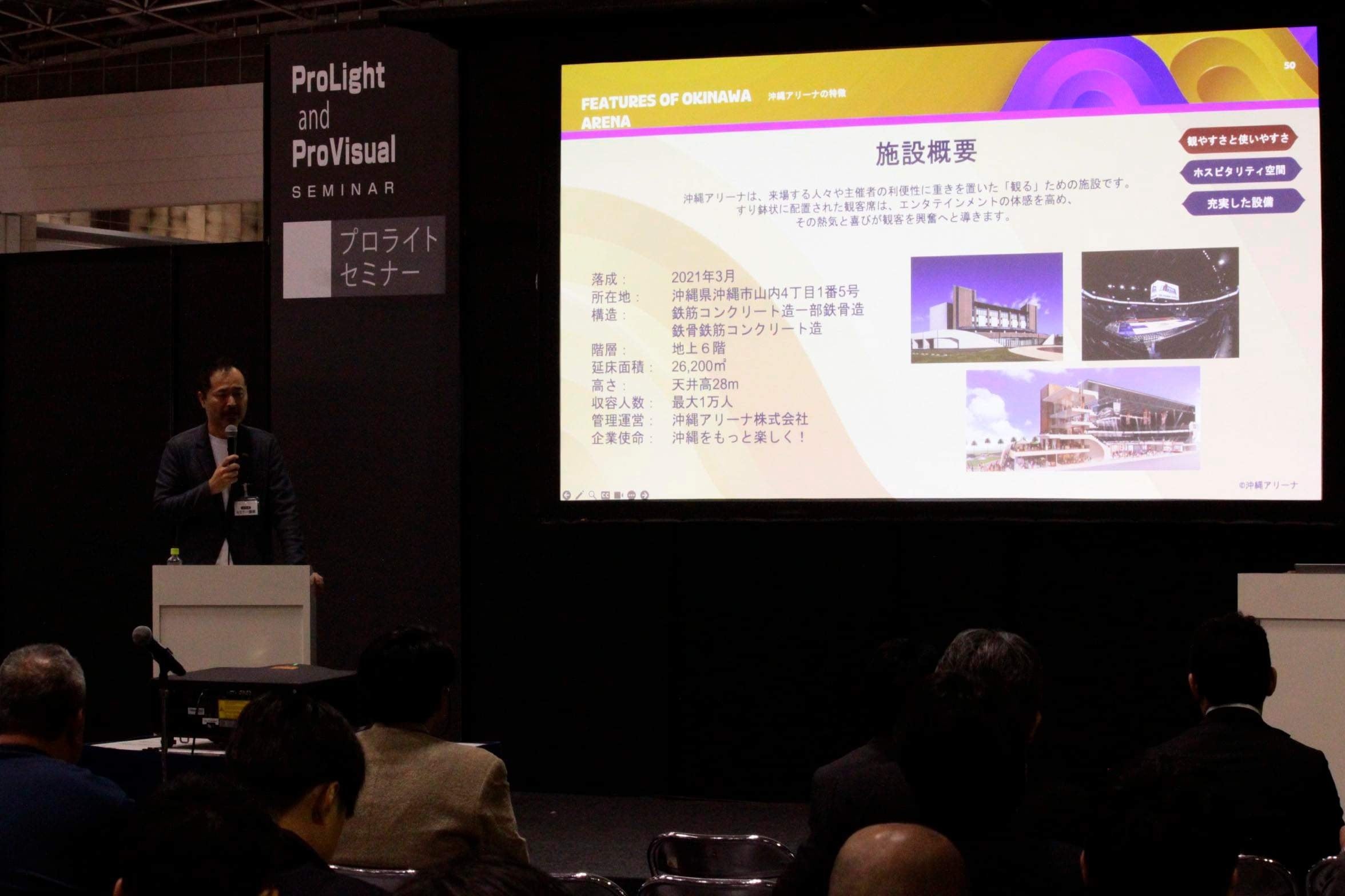 2月16日(金)に東京ビッグサイトにて開催された、演出に関わるプロフェッショナルが集う専門展示会「ProLight&ProVisual2024」におけるセミナーに、沖縄アリーナ株式会社から片野竜三取締役が登壇しました。