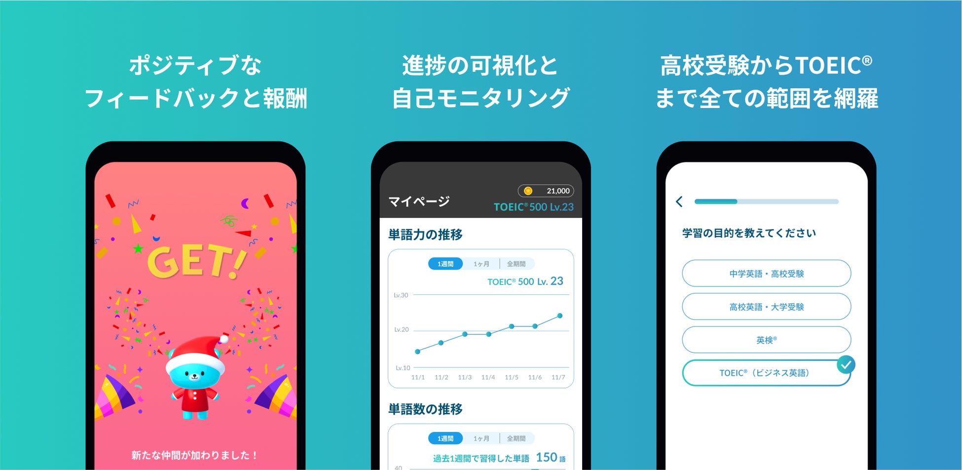 また、モチタンには、他の英単語アプリとは一線を画する、以下の5つの特徴があります。