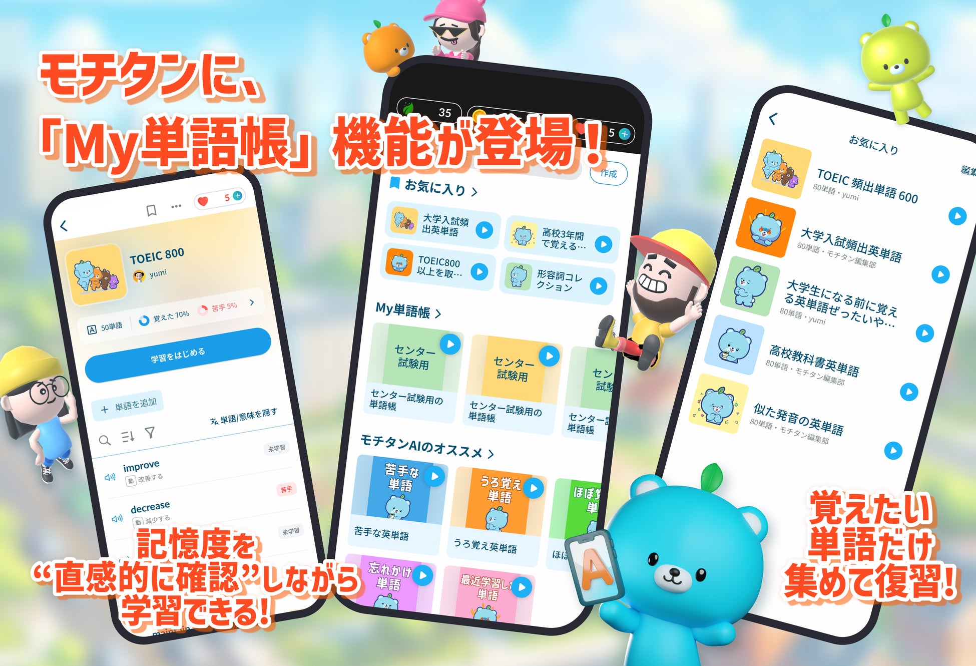 【新機能リリース!】AI英単語アプリ「モチタン」に“自分専用”の「My単語帳」機能が追加!