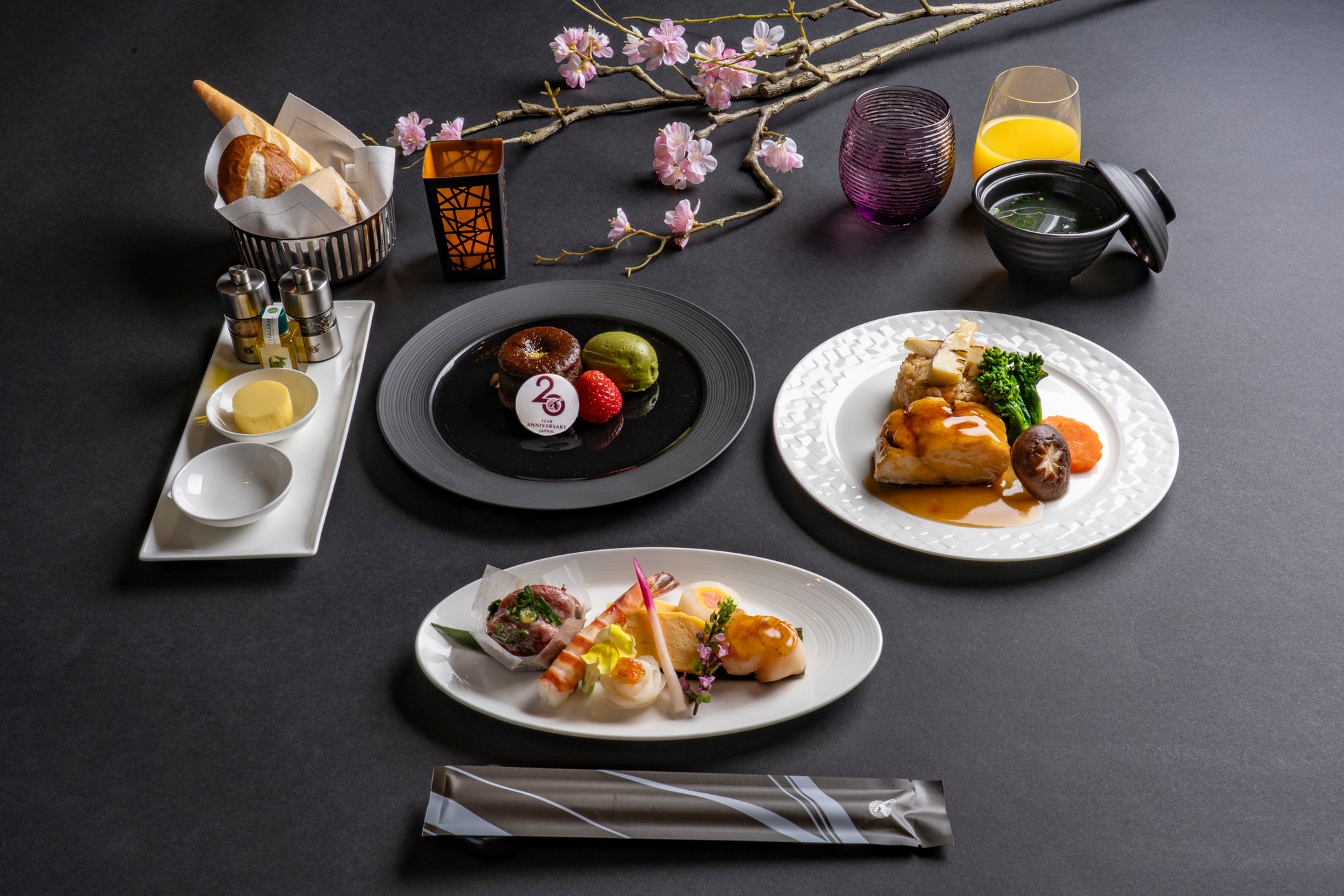 日本の食文化に敬意を表した20周年記念メニューは、伝統的な和の前菜を取り入れた、風味豊かなラインナップが特徴です。成田-ドーハ線のメニューでは、和牛と海藻サラダの胡麻和えをはじめとした前菜、メインには柚子胡椒を使った銀だらを、デザートには抹茶アイスクリームとともにフォンダンショコラを提供いたします。関西-ドーハ線のメニューでは、銀鮭の味噌ダレをはじめとした前菜、メインには胡麻ソースを添えた銀だら、デザートには抹茶チーズケーキと小豆などといった、こだわりの日本食を提供いたします。