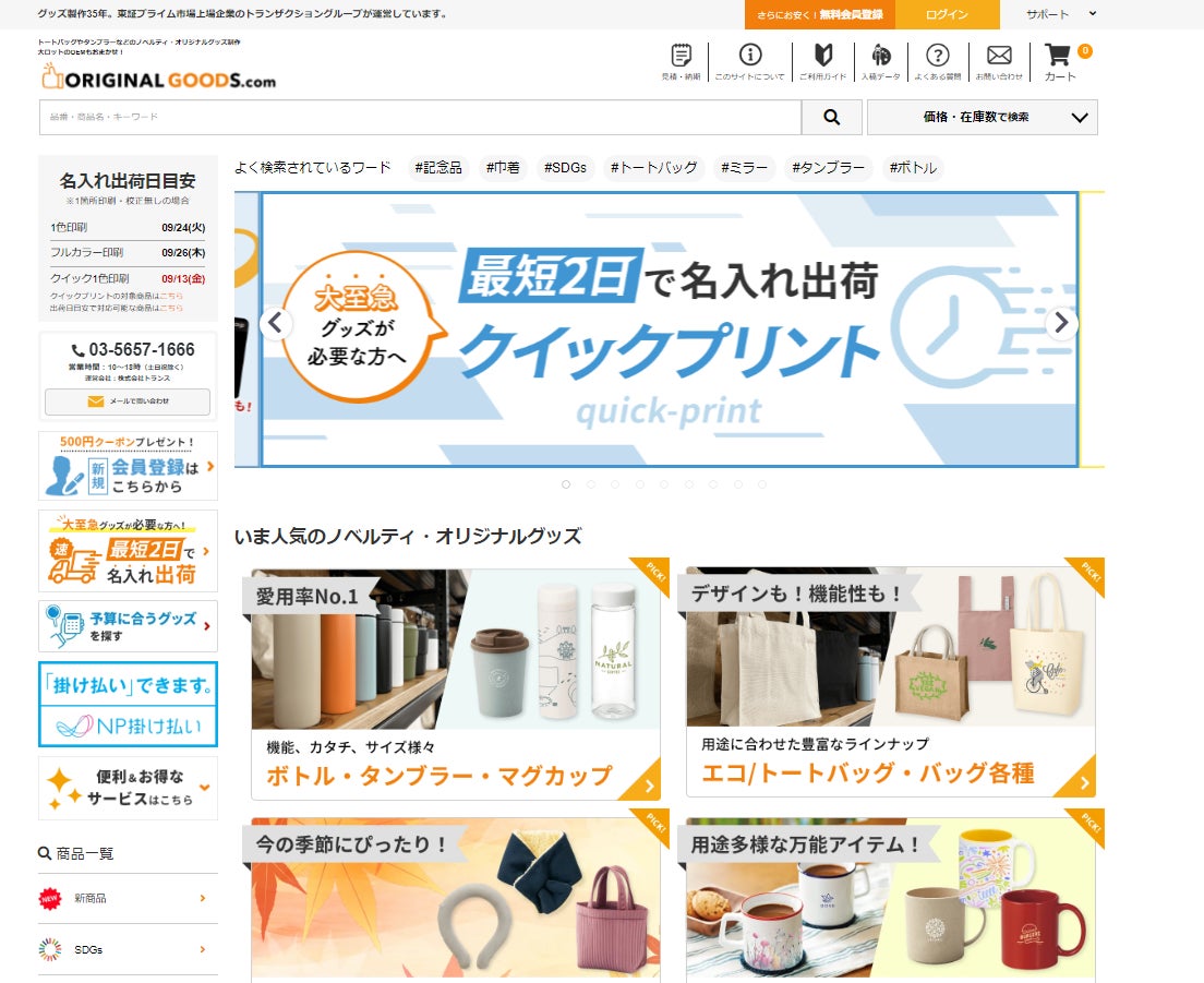 ノベルティ・記念品・販促品製作サイト「オリジナルグッズドットコム」