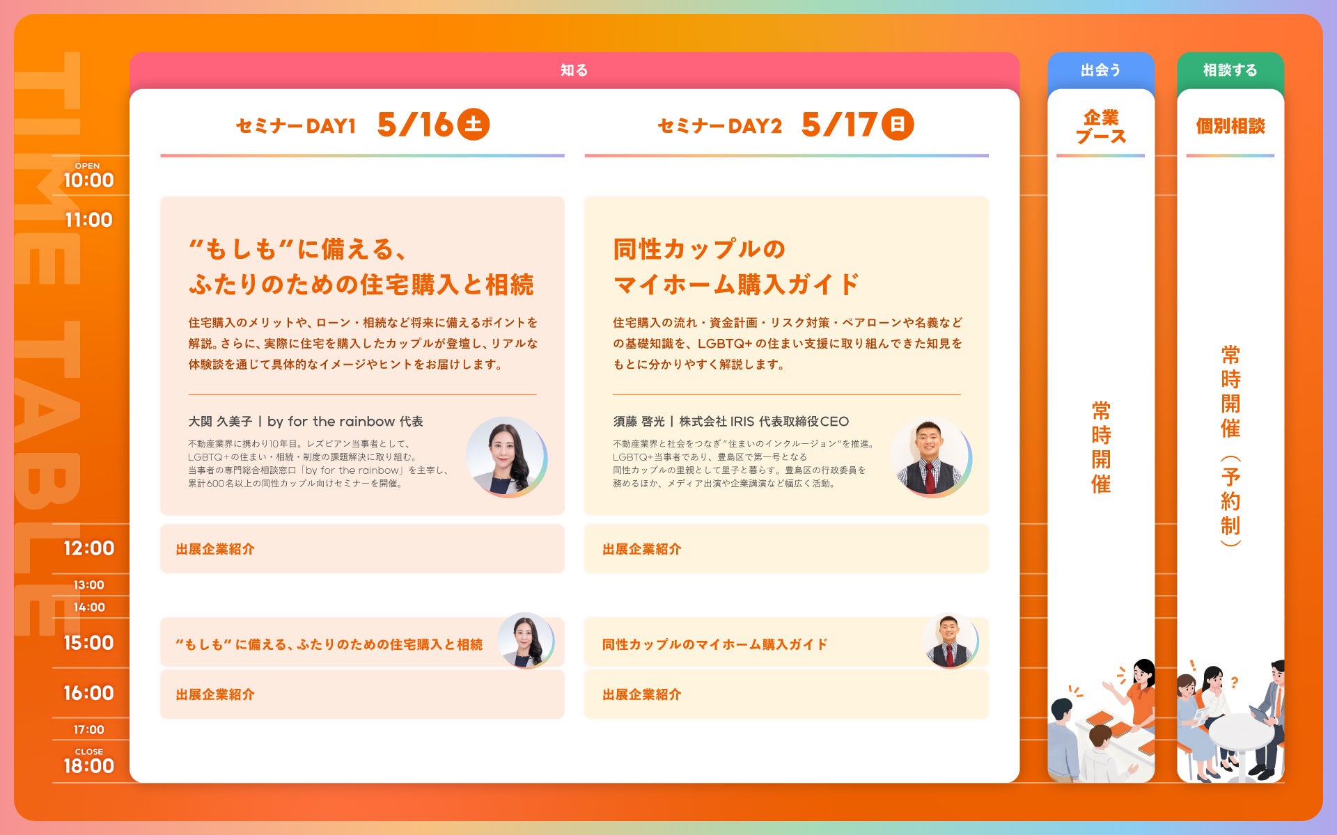「LGBTQのためのマイホーム相談会」のコンテンツ紹介「知る・出会う・相談する」を1日で体験