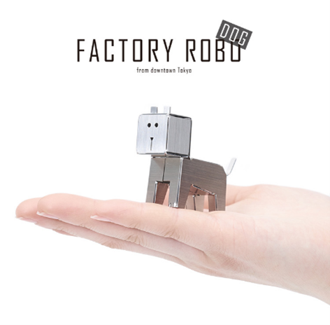 FACTORY ROBO DOGは、「ものづくりの楽しさを伝えたい」という思いからうまれた、1枚の金属の板から組み立てて手作りできる手のひらサイズの犬型ロボットオブジェです。ものづくりの工程を是非おたのしみください。