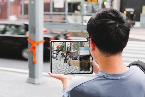 自分で選んだコンテンツが、実際の品川シーズンテラスの中で、AR(拡張現実)として表示されます。