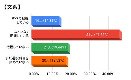 しかし、文系の方が選択科目が定まっている生徒が多く、それに伴って選択科目を「なんとなく把握している」と答えた保護者の割合も高くなっています。