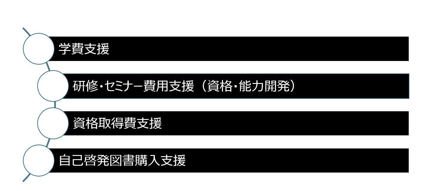 自己成長を重視し、会社が推奨する学習内容について、学費の一部または全額を補助