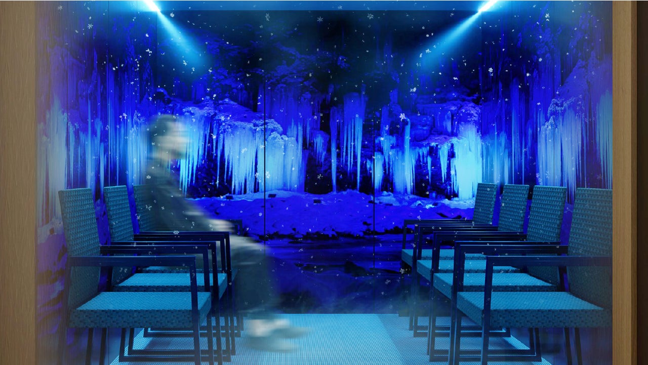 秩父の冬の風物詩である「氷柱」をイメージしたアイスルームでは、-20℃に設定された環境の中でゆっくりとクールダウンをすることができます。 通常の水風呂とは異なる緩やかなクールダウンによって、まるで秩父の冬の自然に溶け込んでいくかのような感覚を味わえる『祭の湯』だけの”ととのう”体験をお届けします。