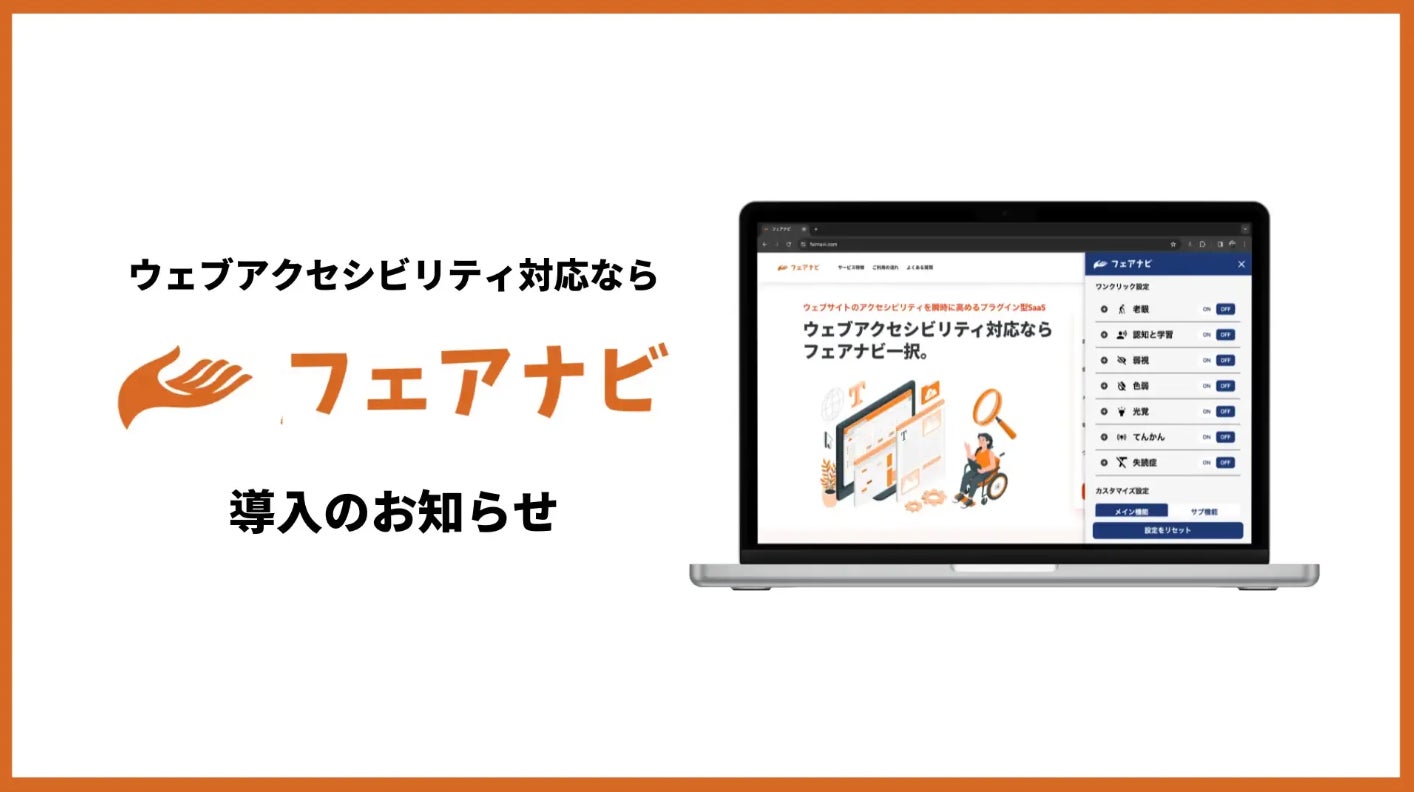 「フェアナビ」は最短1分、1行でウェブのバリアフリー化をするサービスです。
