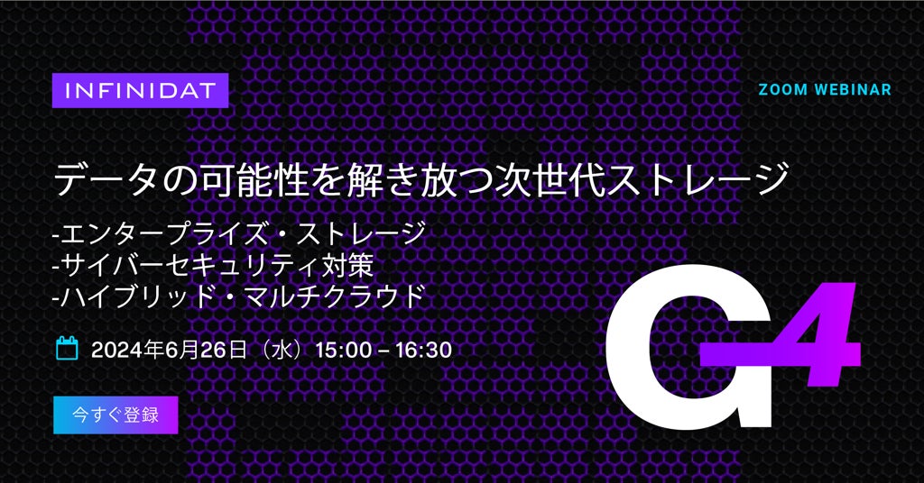INFINIDAT Japan合同会社は、本年5月に発表した次世代ストレージ製品InfiniBox® G4ファミリーをご紹介するWebinar「データの可能性を解き放つ次世代ストレージ」を6月26日(水)に開催します。