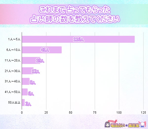 「11人~20人」と答えた19人、さらに「21人~30人」と答えた12人の方は、占いを頻繁に利用し、多様な占い師の意見を求めていることを示しています。