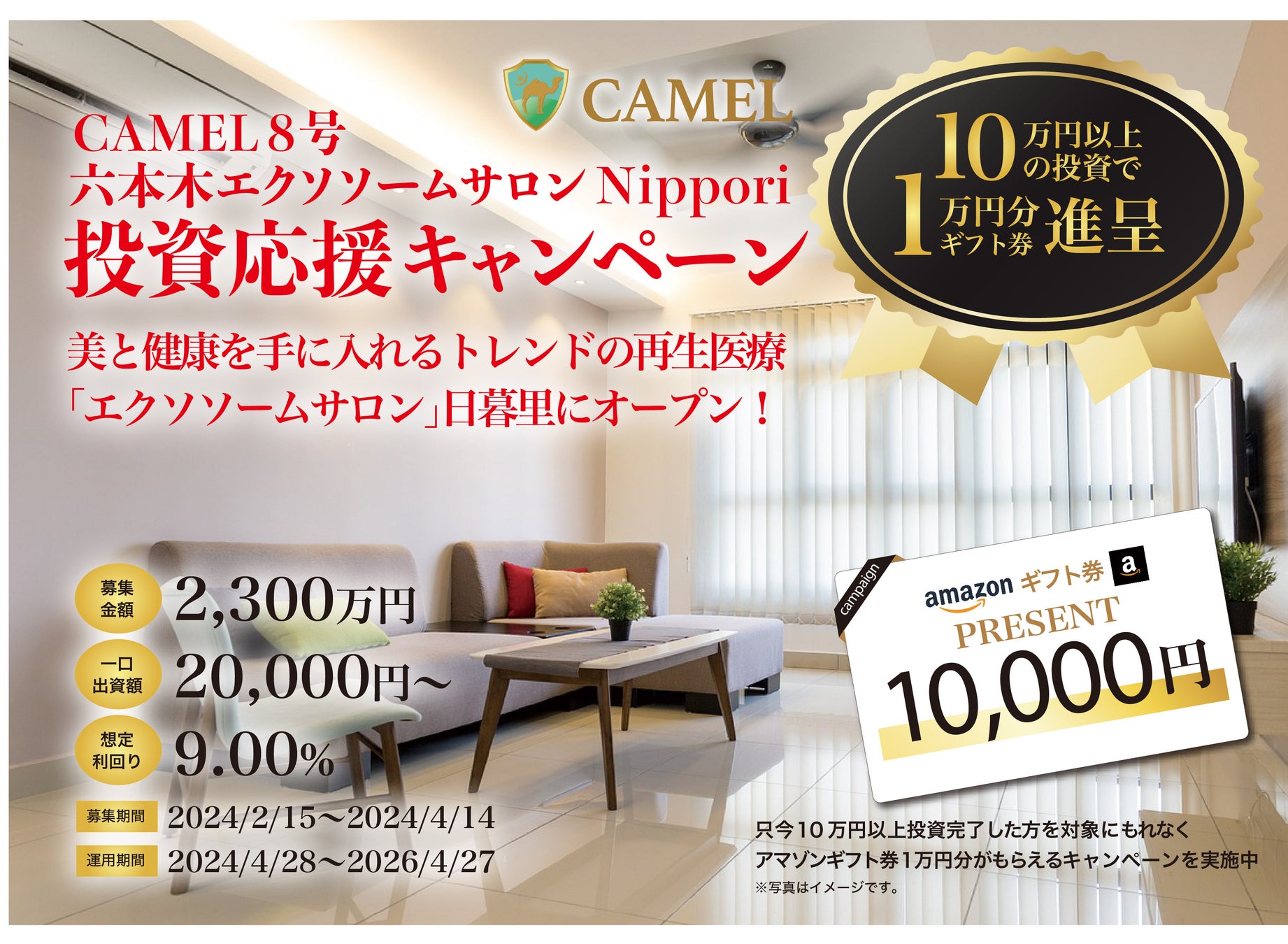 【完売御礼】2万円からのほったらかし投資のCAMEL 『CAMEL8号 六本木エクソソームサロン Nippori 完売』