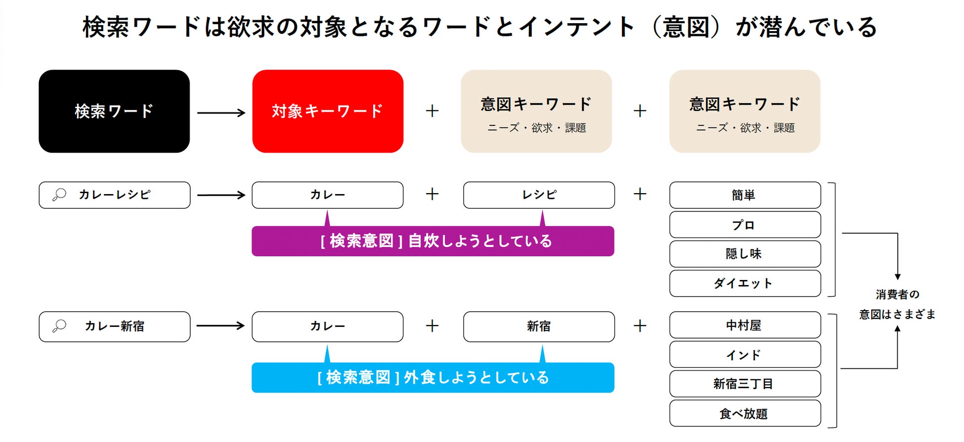 検索を行う際には、欲求の対象となるキーワードとインテント(意図)が含まれています。