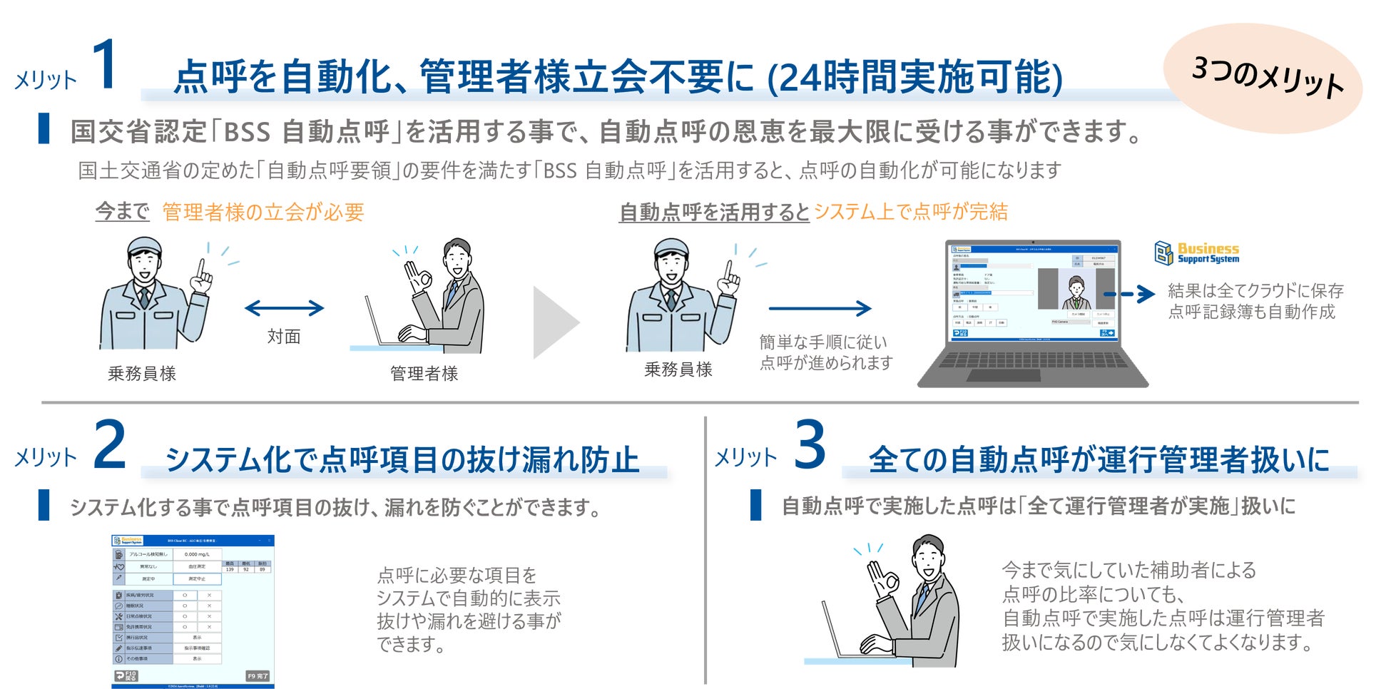 Business Support System(以下BSS)に業務「前」自動点呼の先行実施機能が追加されました。