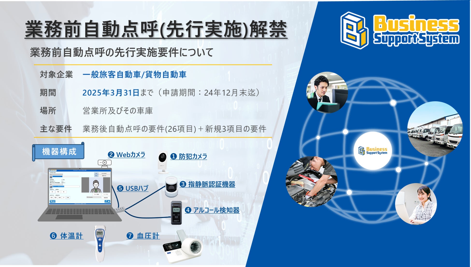 BusinessSupportSystemにて業務「前」自動点呼先行実施に対応した機能をリリースいたします。