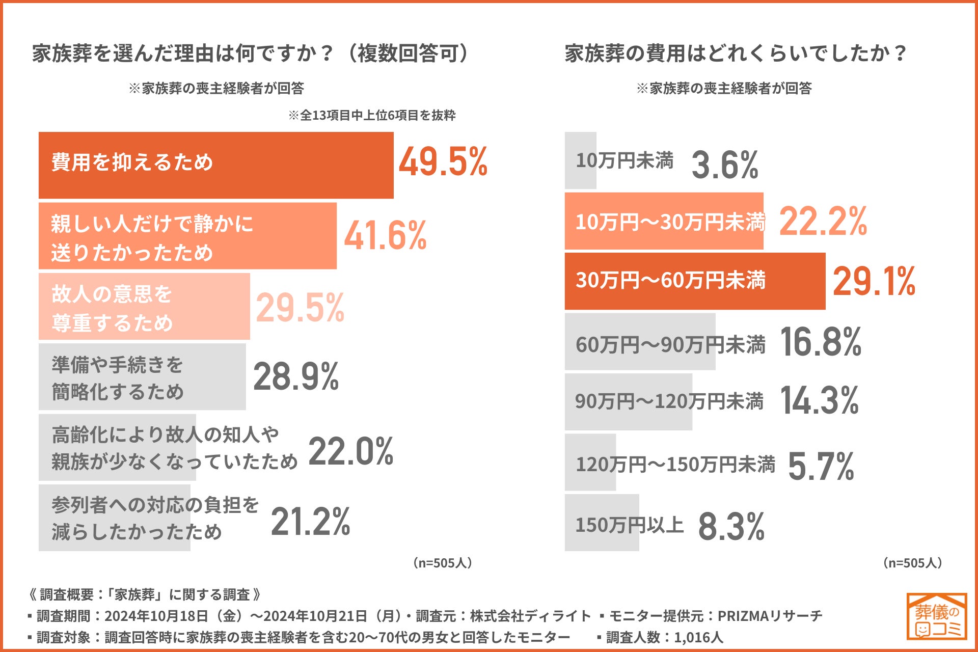 そこで今回、『葬儀の口コミ』(https://soogi.jp)を運営する株式会社ディライト(https://delight.co.jp/)は、家族葬の喪主経験者を含む20~70代の男女を対象に「家族葬」に関する調査を行いました。
